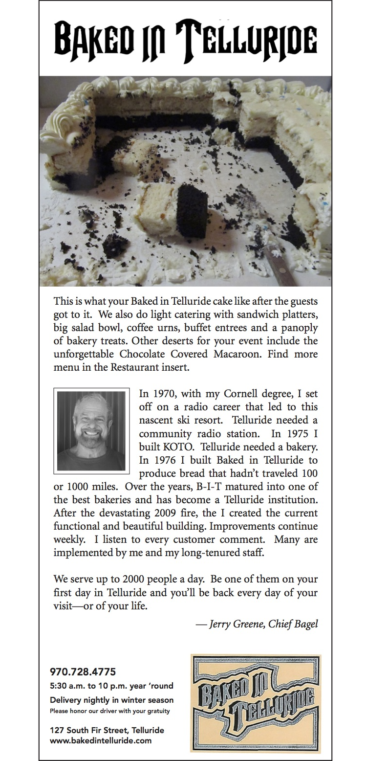 Welcome to Baked in Telluride- Restaurant, Bakery, Deli, Pizza, Pasta, and Coffee Shop, and more